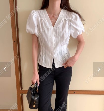이니셜 샤벳블라우스 반팔블라우스 퍼프블라우스