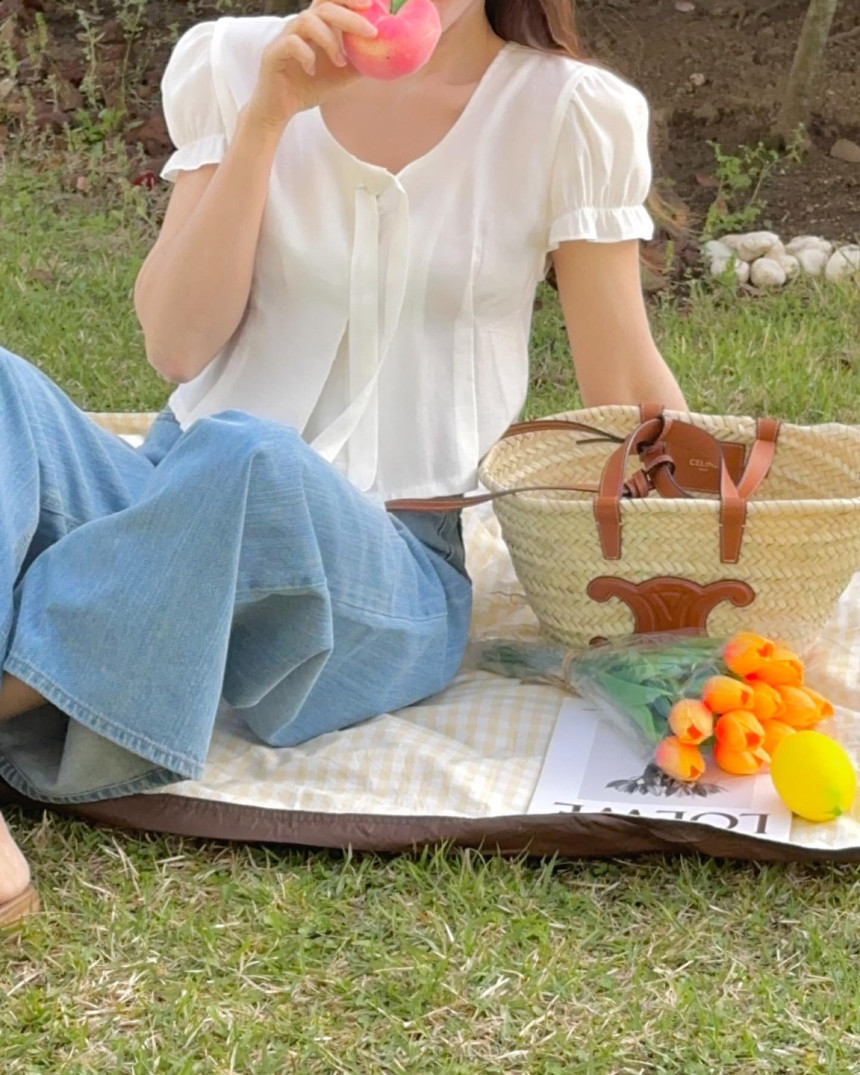 [소라당일] 폼스튜디오 크롭타이블라우스 반팔블라우스 퍼프블라우스