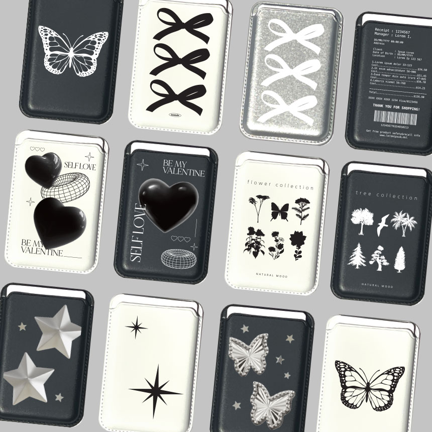 🖤실버 흑백 [맥세이프 카드 지갑 모음전] 댕냥 포켓 리본 블랙 하트 케이스 세트