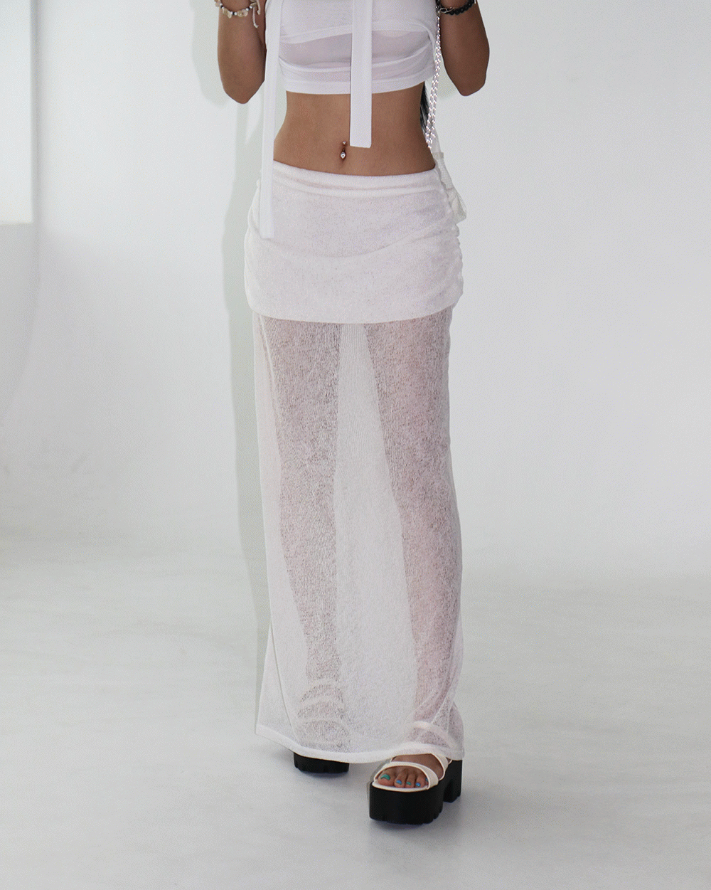 시스루 레이어드 맥시 롱스커트