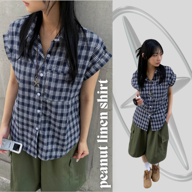 [여름신상/긱시크] 체크 포인트 빈티지 롤업 반팔 셔츠