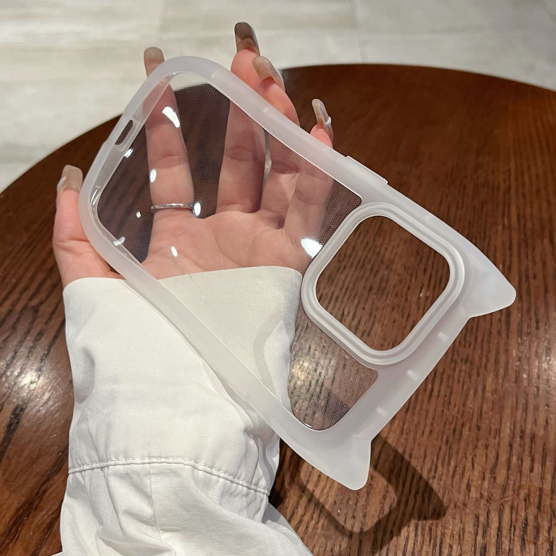 당일🚀, [ 17 입고 ] 고양이 반투명 귀 범퍼 아이폰케이스 / 아이폰 12 13 14 15 16 17 프로 프로맥스 / 귀여운 고양이케이스 반투명 화이트 핑크 블랙 폰케이스