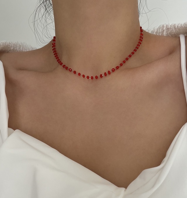 바캉스 룩 ga 써지컬 비즈 루비 자마노 원석 바캉스 초커 휴가룩 레이어드 목걸이