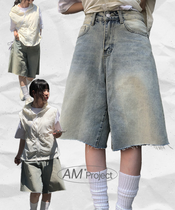 [A/M] 펀스 워싱 데님 버뮤다 팬츠 (2color)