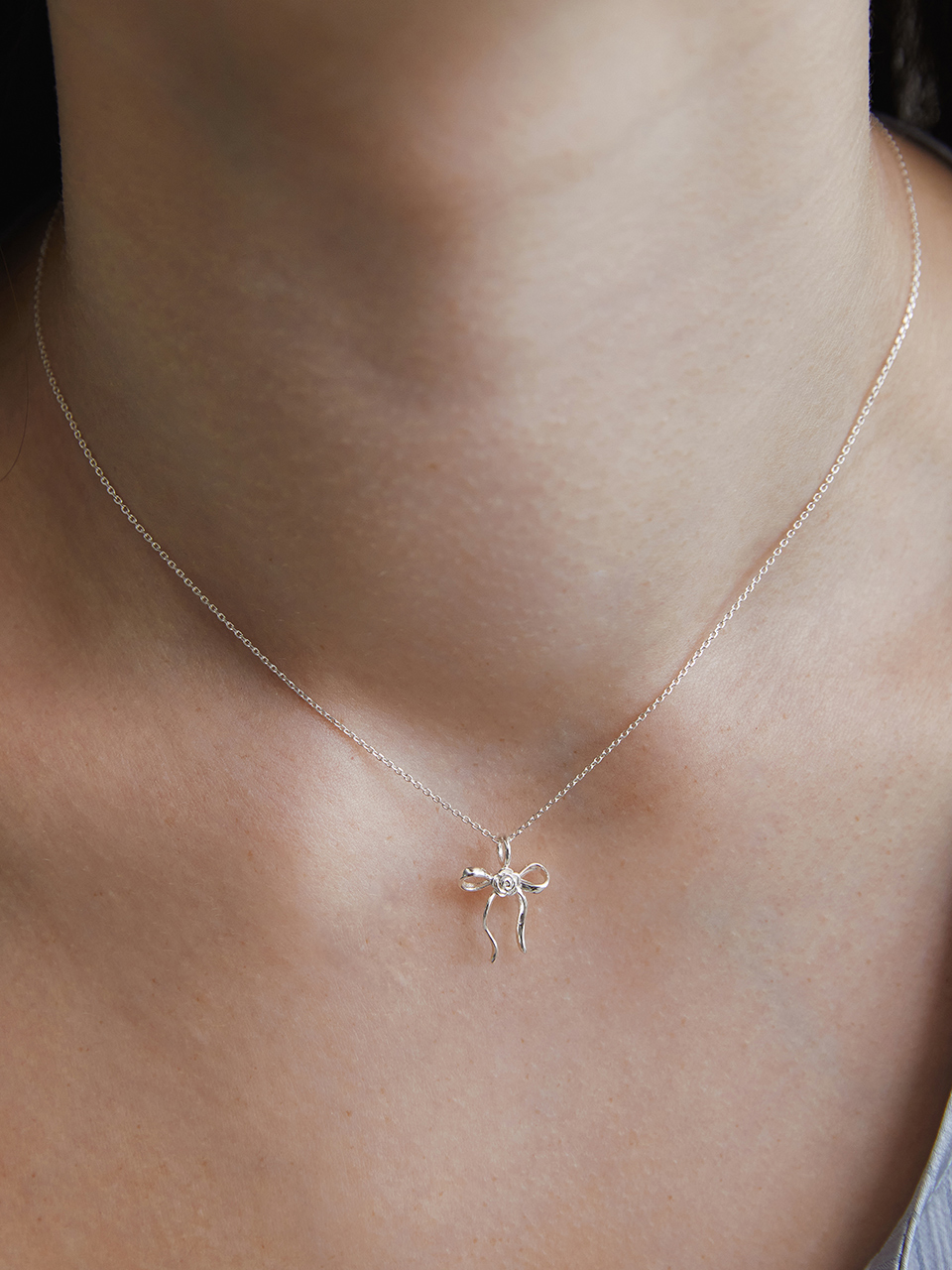 (실버925) 소피아 장미 리본 목걸이 NZ2422