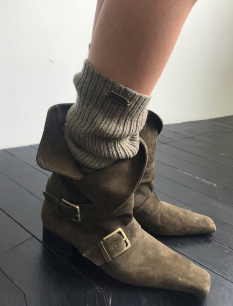 고퀄리티 여성 숏부츠 수제화 앵클 웨스턴 위아 리얼 스웨이드 버클 부츠 (베이지 카키)