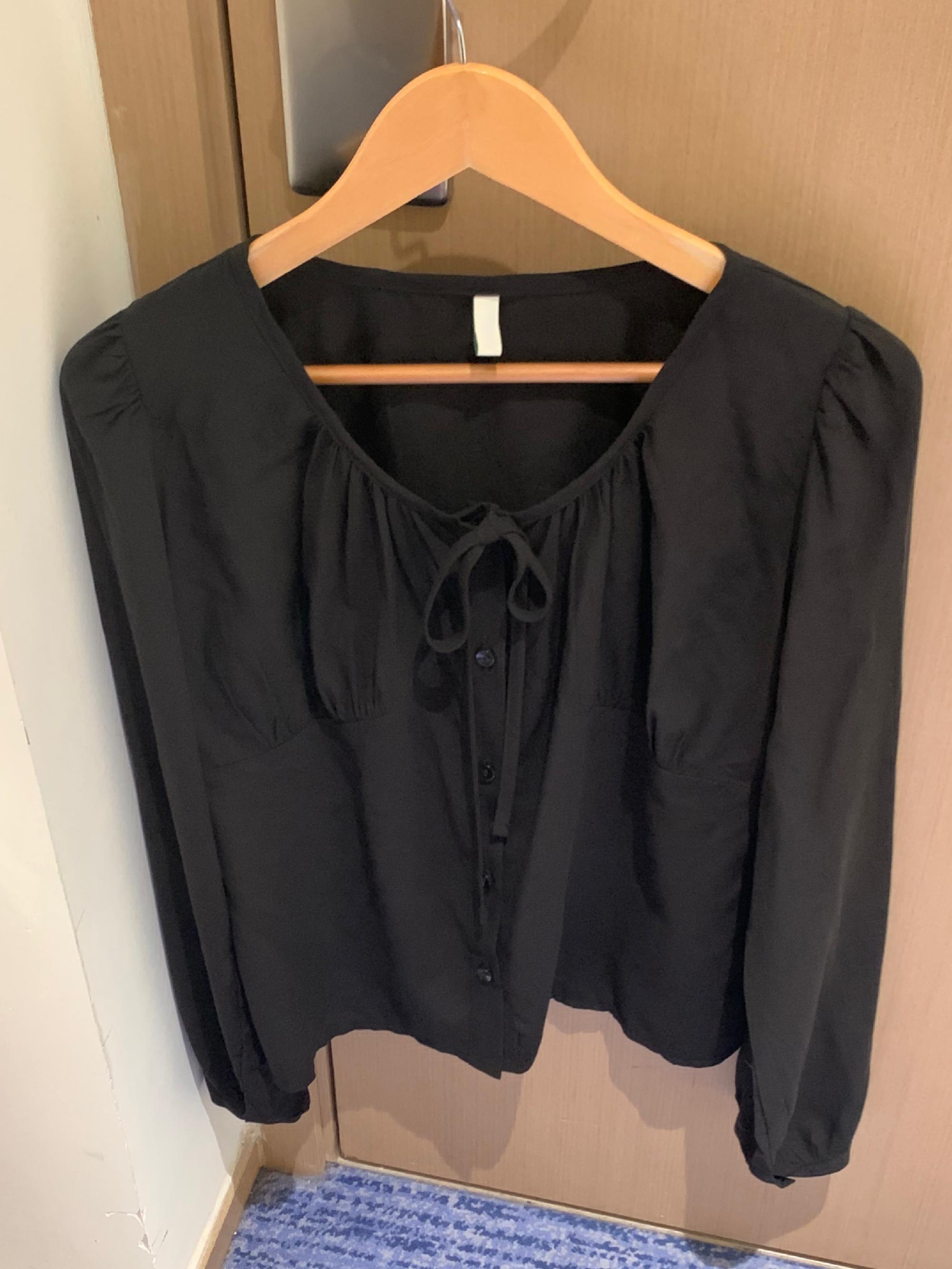 [여리찰랑] 리본 퍼프 블라우스 라운드 하객룩 발레코어 루즈핏 봄 간절기