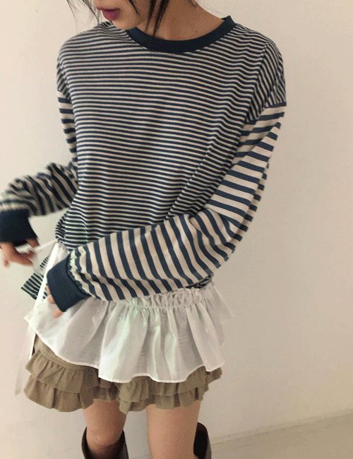 더블mtm 단가라 스트라이프 맨투맨 티셔츠 (2colors)