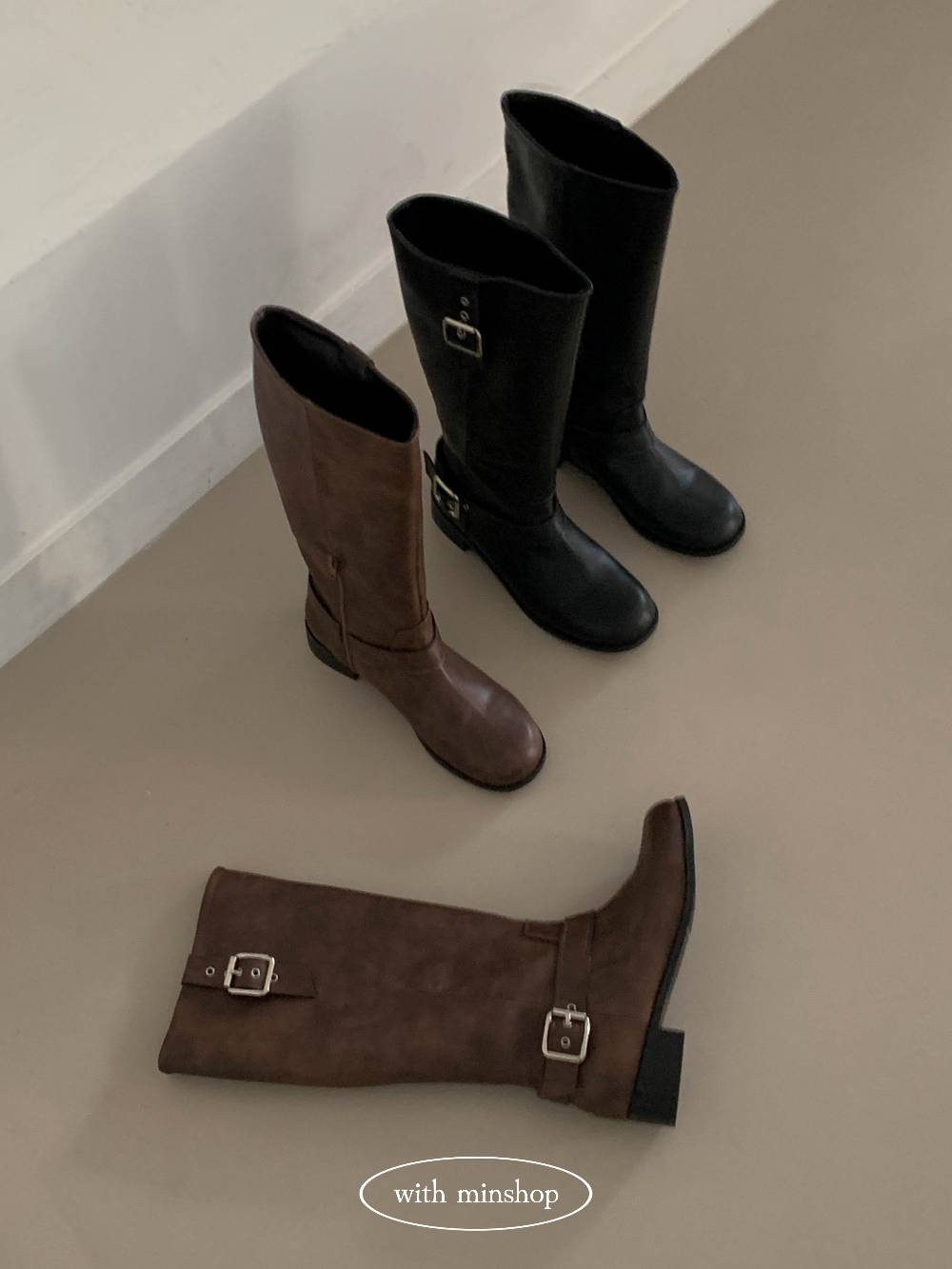 [사계절💛롱부츠] 로베 웨스턴 투벨트 스트랩 가을 롱부츠 (3cm)