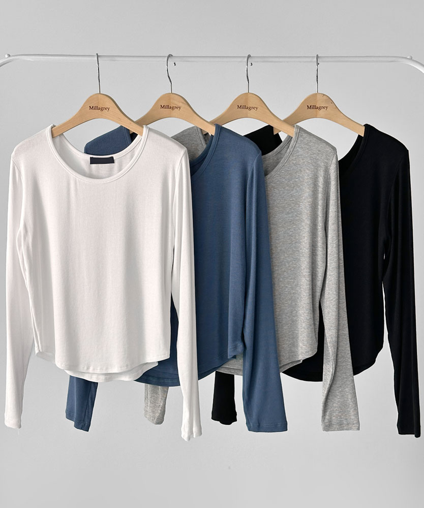 세미크롭 유넥 긴팔 기본 이너 롱슬리브 티