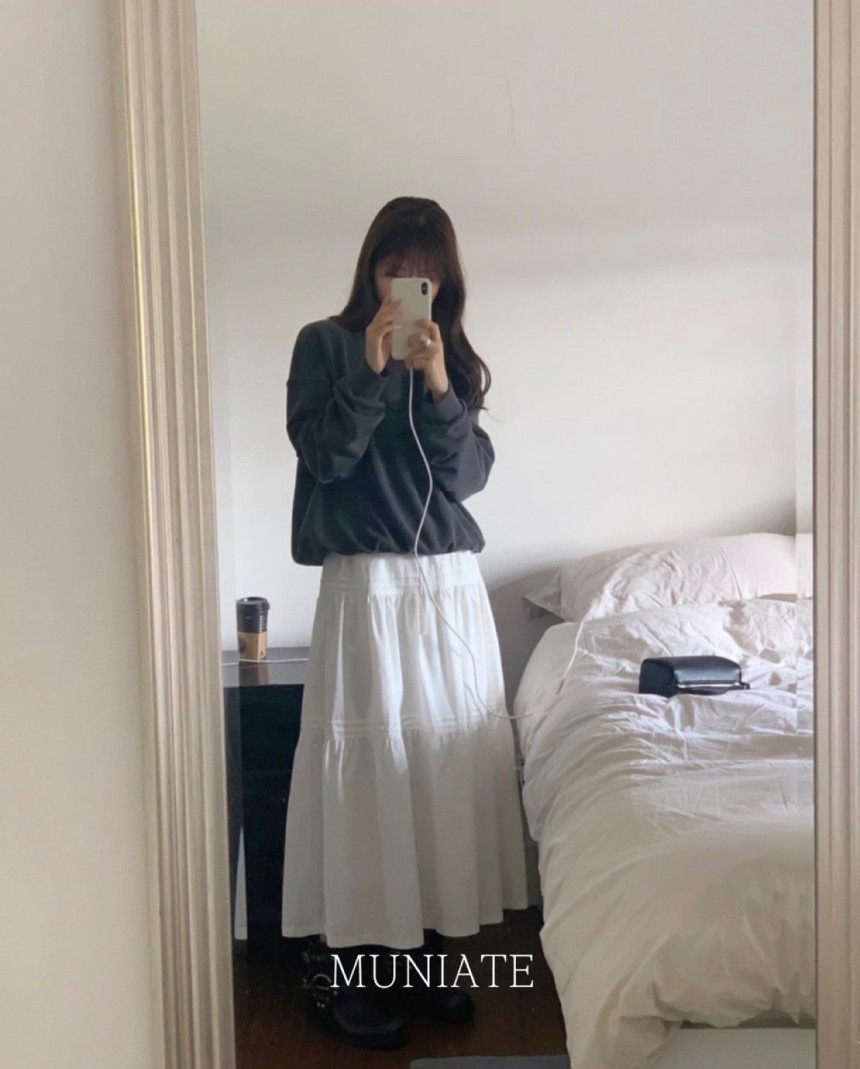 MUNIATE] liter 리터 오드리 캉캉 스커트 핀턱 셔링 롱 치마 sk