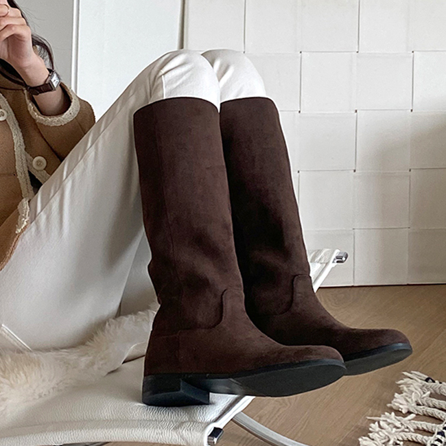 베어리 일자핏 통넓은부츠 둥근코 스웨이드 니하이 롱부츠 (2.5cm)