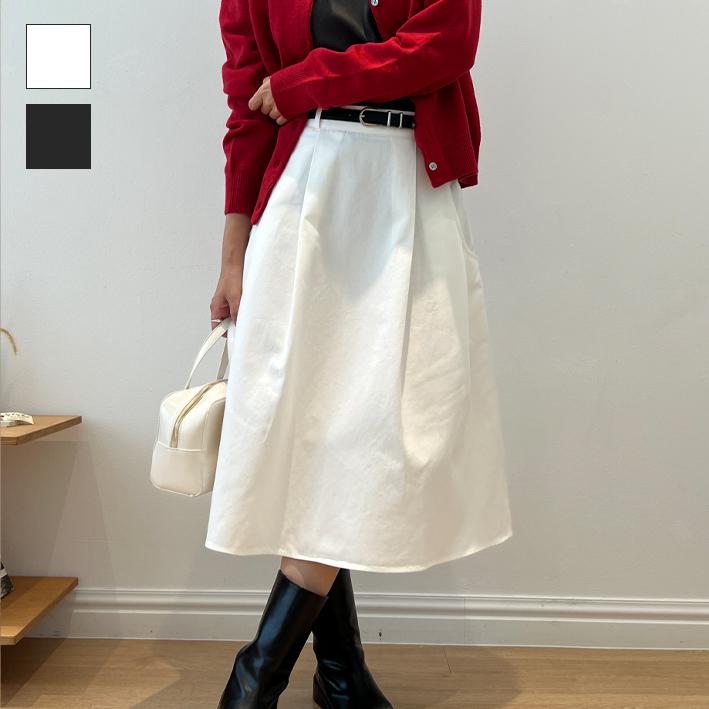투유 플레어스커트 미디 롱치마 화이트스커트 포켓 핀턱치마 코튼