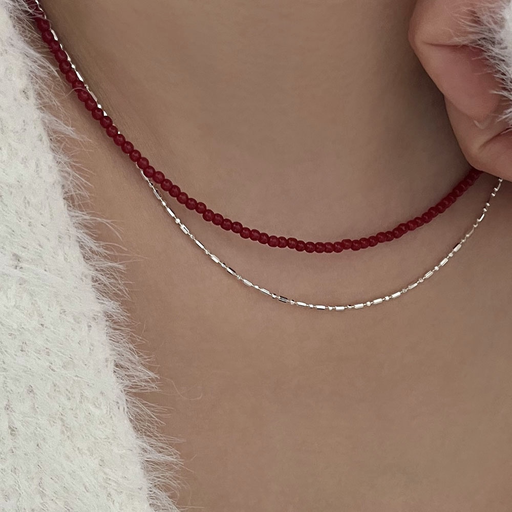 [써지컬] 심플 버건디 딥 레드 2mm 글라스 비즈 목걸이