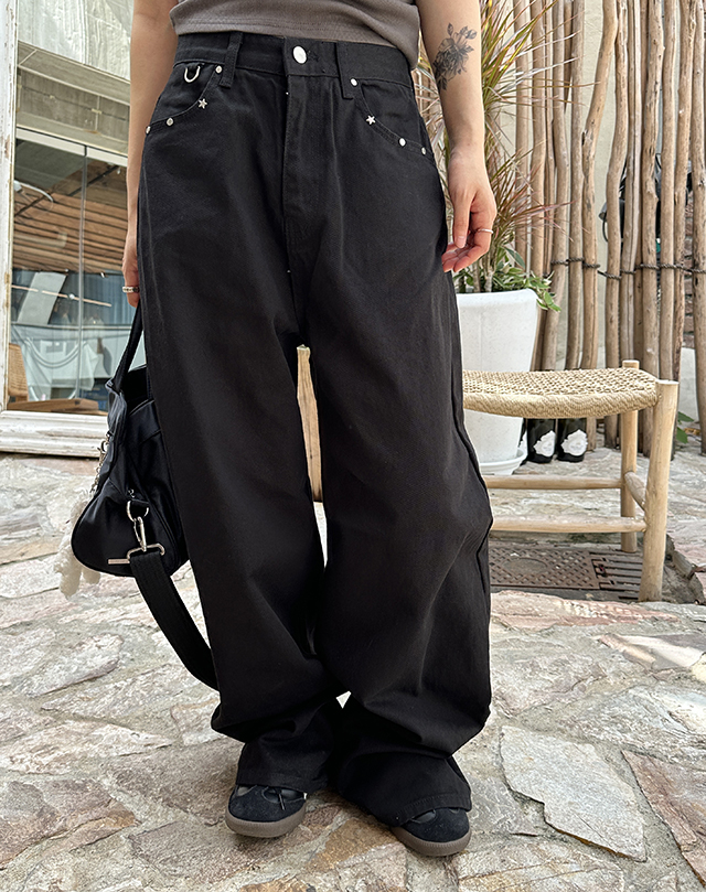 할렘 리벳 와이드 코튼 블랙 코튼 팬츠 1423
