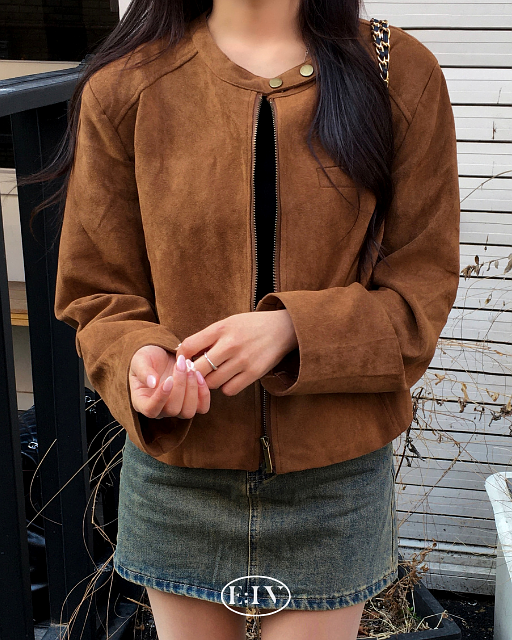 [당일배송/주문폭주🩶] 메보 스웨이드 세무 노카라 숏 자켓 (데일리,데이트룩,여친룩,페미닌,힙한,나들이,개강룩,크롭,오버핏,잠바,슬림핏,블루종,점퍼,봄,가을,간절기,키작녀)