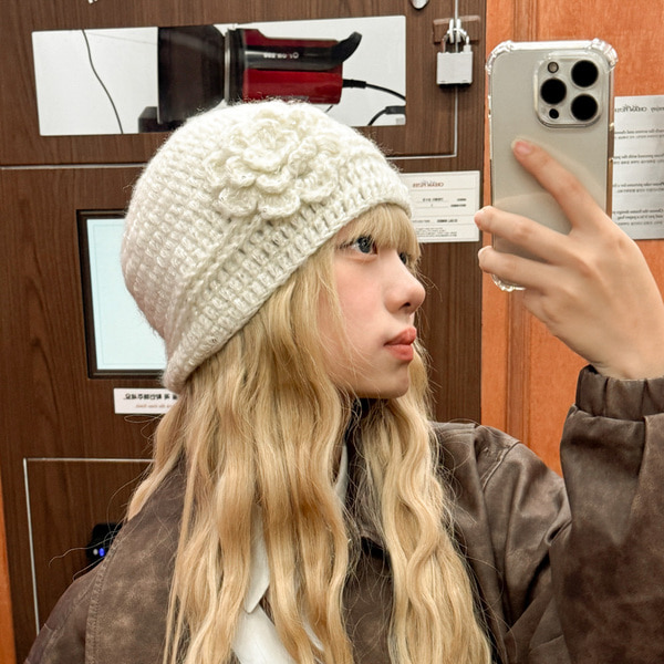 [포인트🤍] 스팽클 플라워 니트 뜨개 비니 모자 4color