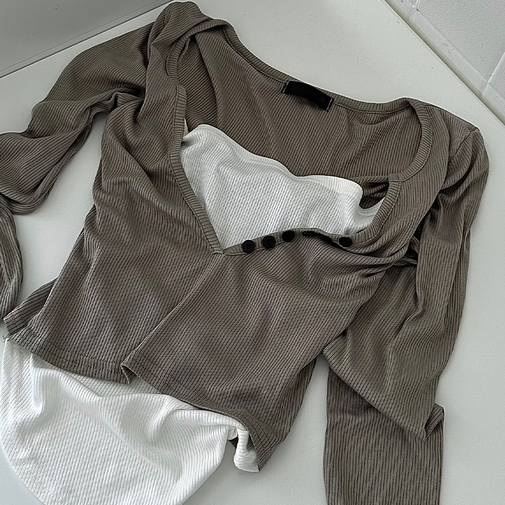 [무료배송][여리핏/밑단굴림]웨지 버튼 긴팔티 - 간절기 이너템 꾸안꾸 데일리 여리글램 스판 긴팔티셔츠