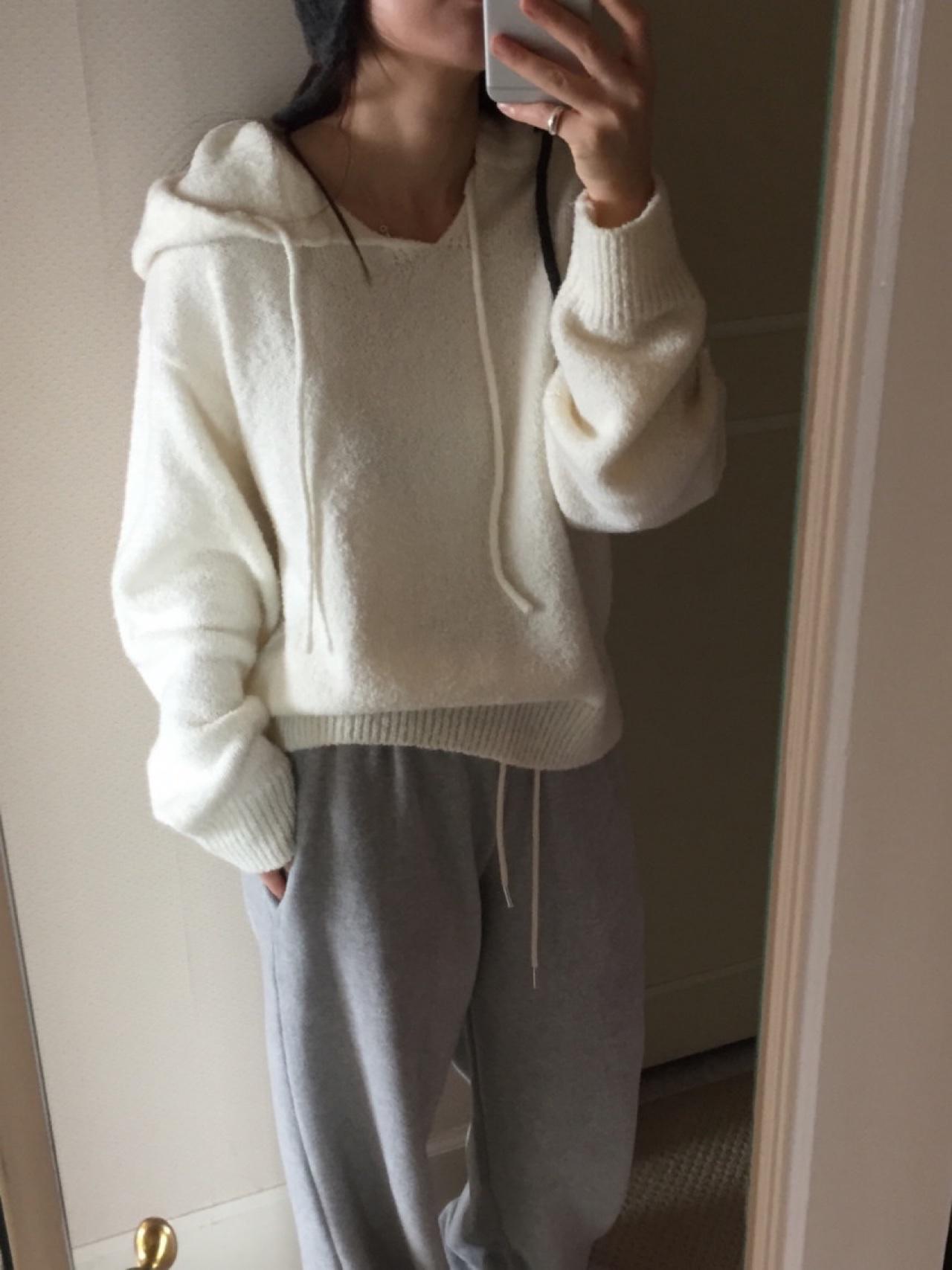 [MUNIATE/무니에트] taffeta 타프타 컬리 후드 니트 긴팔 nt