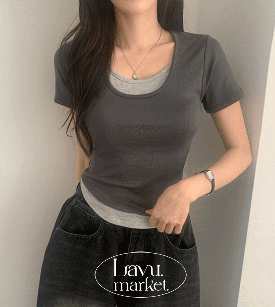 반팔&긴팔 배색 참 예뻐! 밀키 레이어드 스퀘어넥 굴림 반팔 긴팔티셔츠 3color [밑단굴림/딸기우유/벚꽃/레이어드티/스퀘어넥긴팔티/유넥긴팔티/벚꽃룩/굴림티]