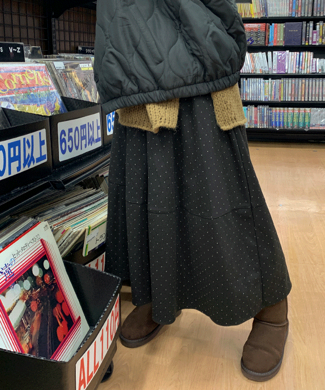 디케인 도트 플레어 기모 밴딩 롱 스커트