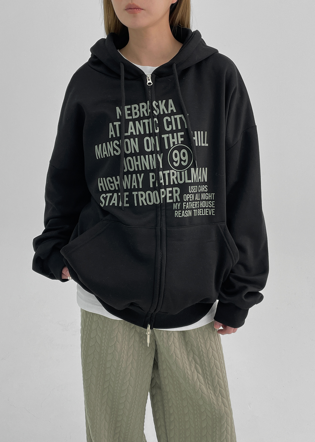 (UNISEX) 마케 기모 투웨이 프린팅 후드집업