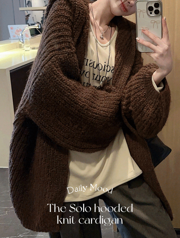 [오버핏✨] 더솔로 후드 니트 가디건 CD1896겨울 롱 하프 기본 베이직 루즈핏 오버핏 울 알파카 오픈 하프 숄 연말룩 모임룩 파티룩 크리스마스룩