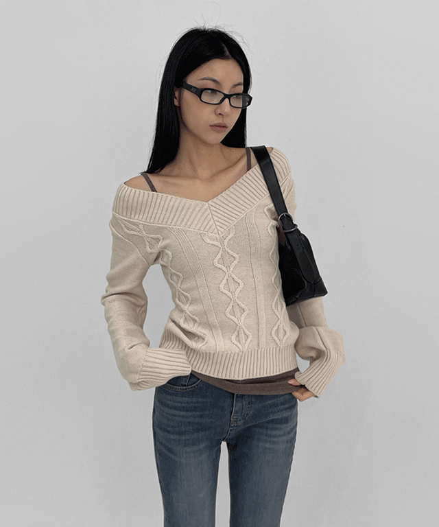 [3천장판매] 쇼커 케이블 슬림 브이넥니트