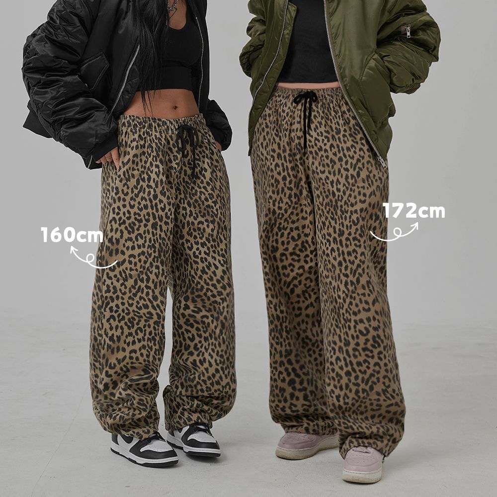 레오파드와이드배기팬츠 2컬러 브라운 그레이 호피무늬바지 레오파드바지 레오파드패턴
