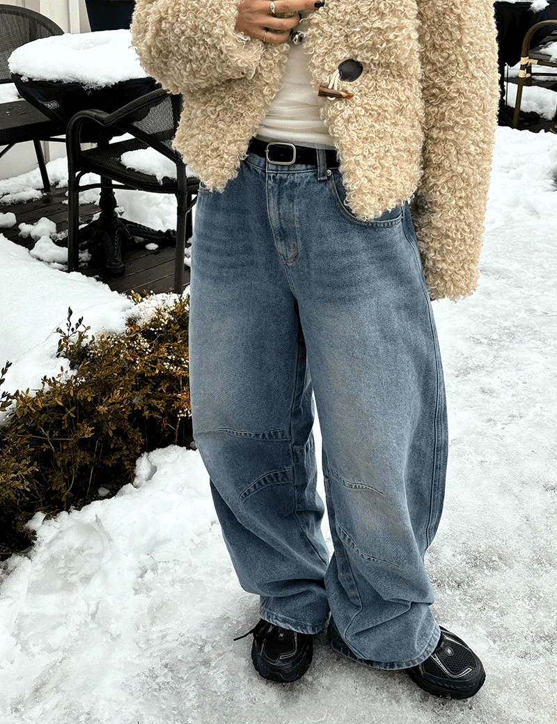블릭 핀턱 와이드 데님 팬츠(공용) - 3 color