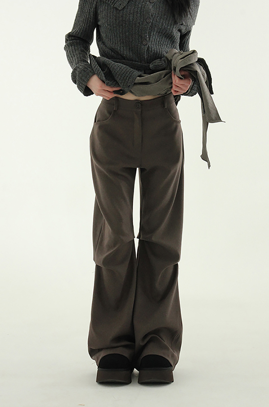 back button pin tuck boot-cut slacks