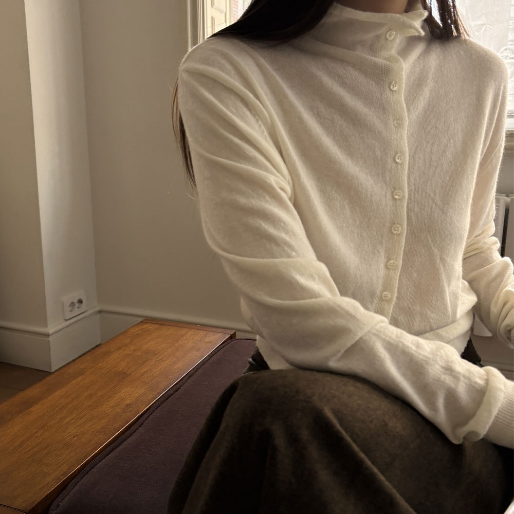 르떼 하이넥 버튼 울 루즈핏 이너 니트 가디건