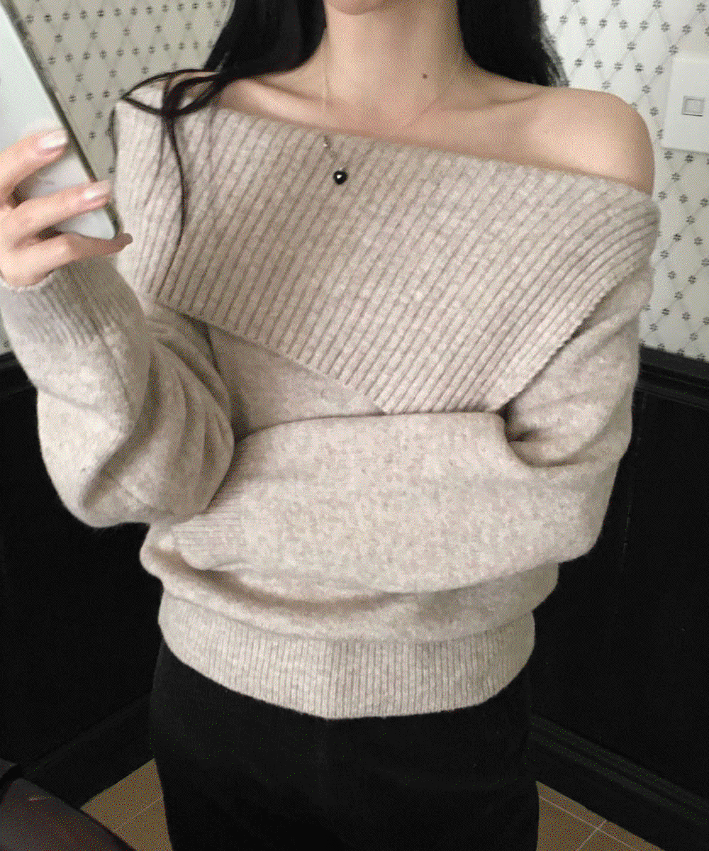 로베 언발 오프숄더 긴팔 니트 (4color)