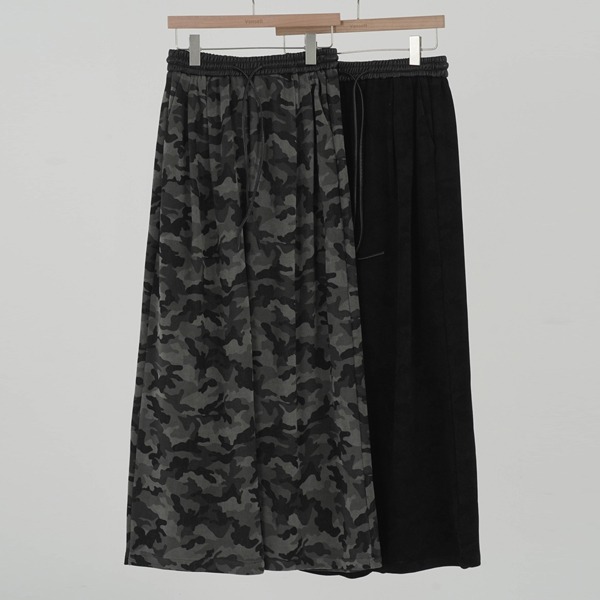 [S/S 버전추가] 레더 밴딩라인 카모 와이드 팬츠 카모플라쥬 편한바지 밴딩바지 카모바지 와이드밴딩팬츠