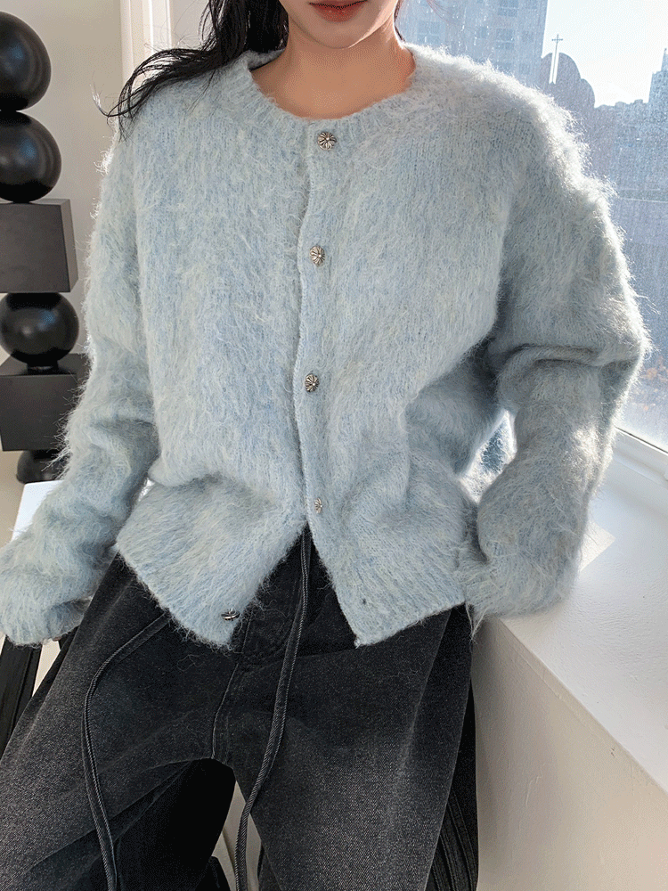 [UNISEX] 헤이즈 크롬 울 헤어 루즈핏 가디건