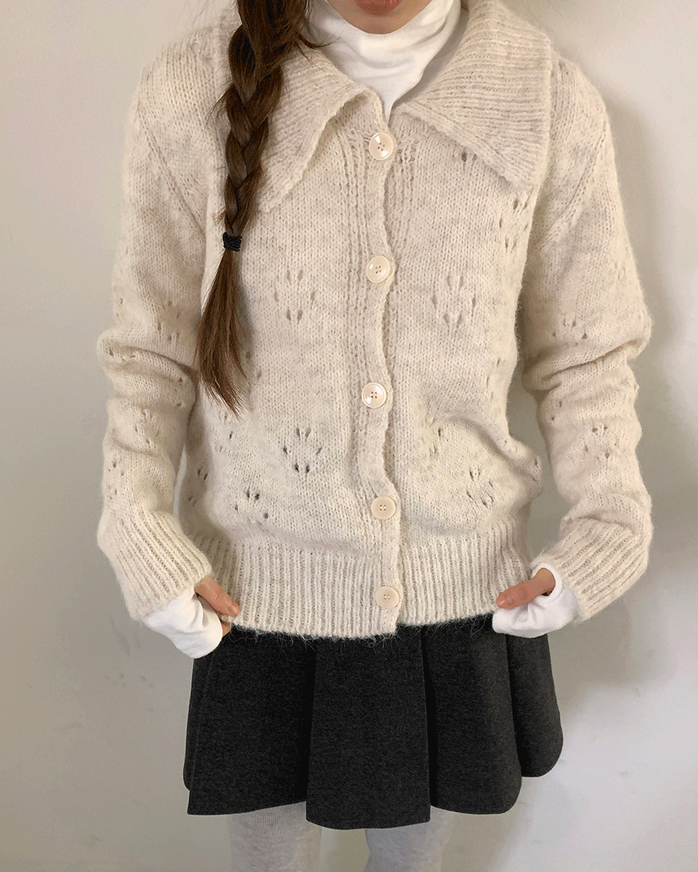로안 빈티지 빅카라 울 펀칭 니트 가디건