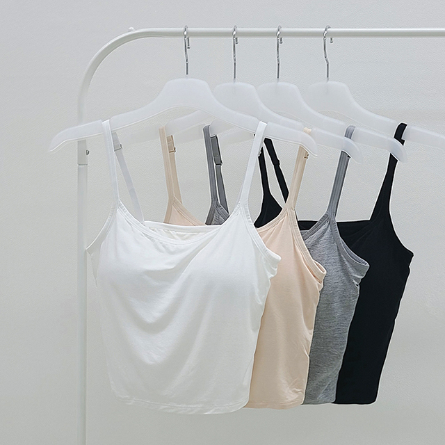 [볼륨캡내장💕/어깨끈조절/일체형/이너/레이어드/몸매보정/기본나시/노와이어/노브라/브라렛/부유방커버/쫀쫀/브라탑/이너탑] 오츠 유넥 슬림핏 브라 패드 캡 끈 크롭 나시티셔츠 민소매