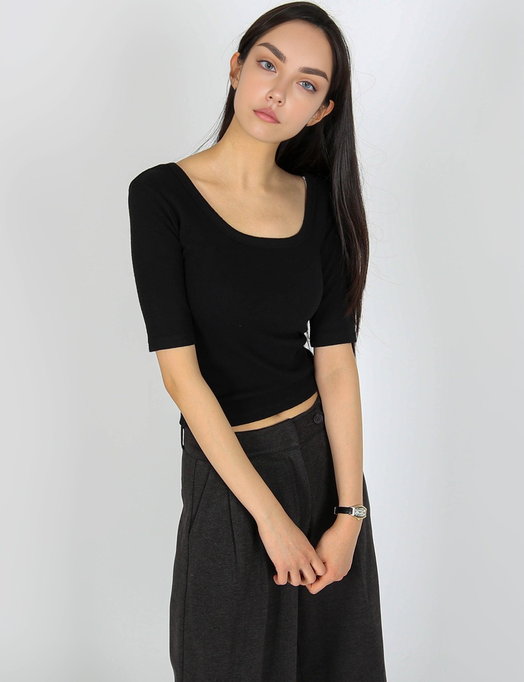 [3color] 플러피 유넥 하프슬리브 탑 TPBTO086X