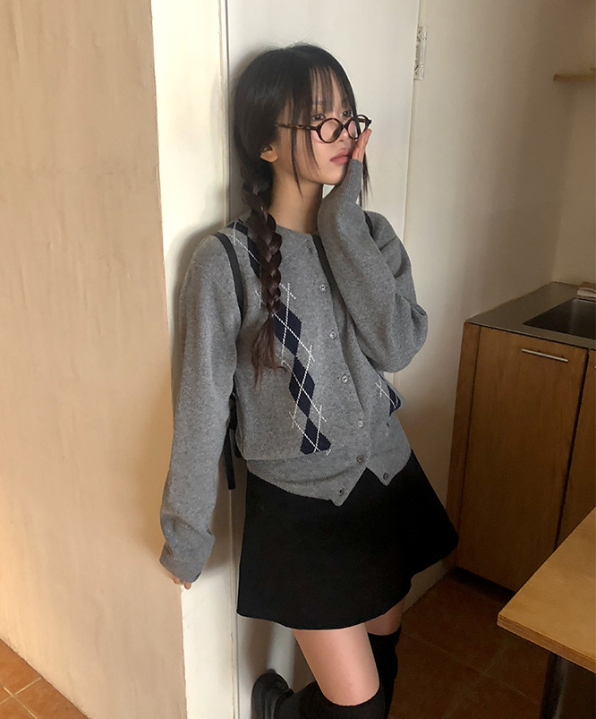 [S/S🌸NEW] 모딘 울 아가일 카라 가디건 (5color) /아가일가디건/레이어드/하객룩/데이트룩
