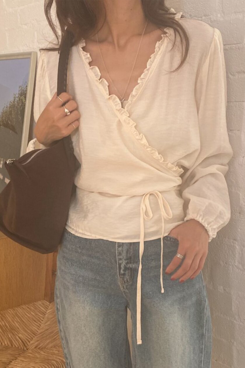 [하객룩/여리핏] 부기 프릴 랩블라우스 블라우스 (3colors)