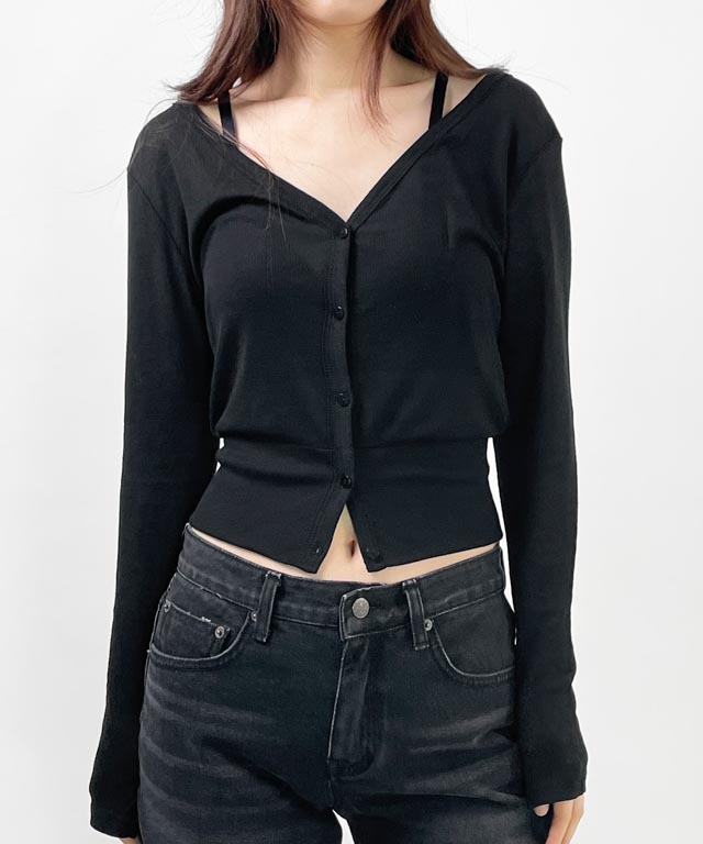 브이넥 이너 레이어드가디건 잘록 크롭가디건 텐셀 간절기 카디건