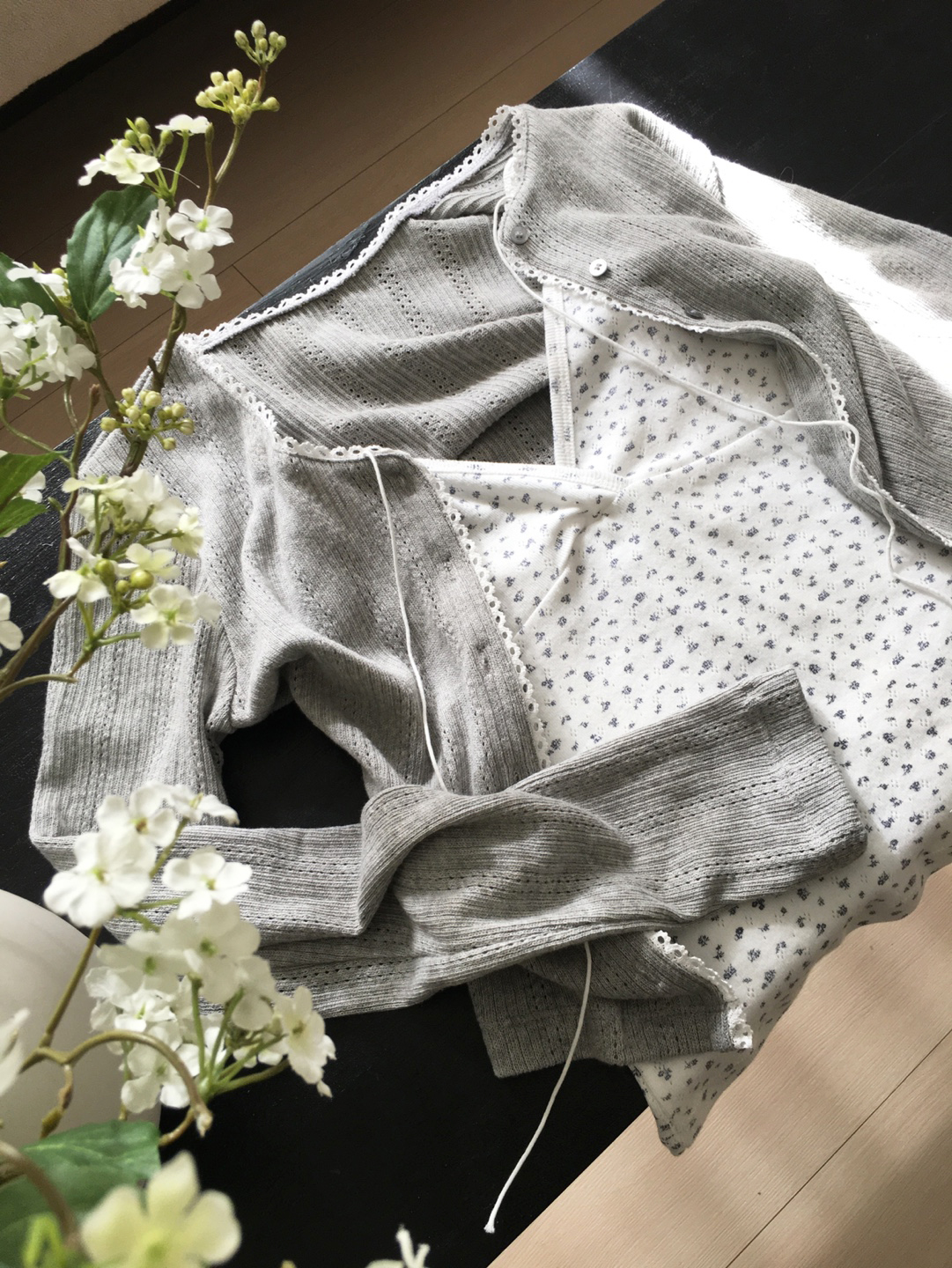 basil punching ribbon cardigan (Ivory, gray)
