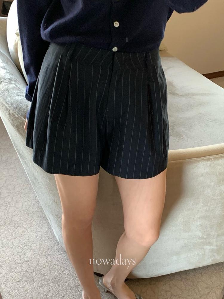 founders 파운더스 베른 쇼츠 A라인 투핀턱 스트라이프 반바지 (2col)