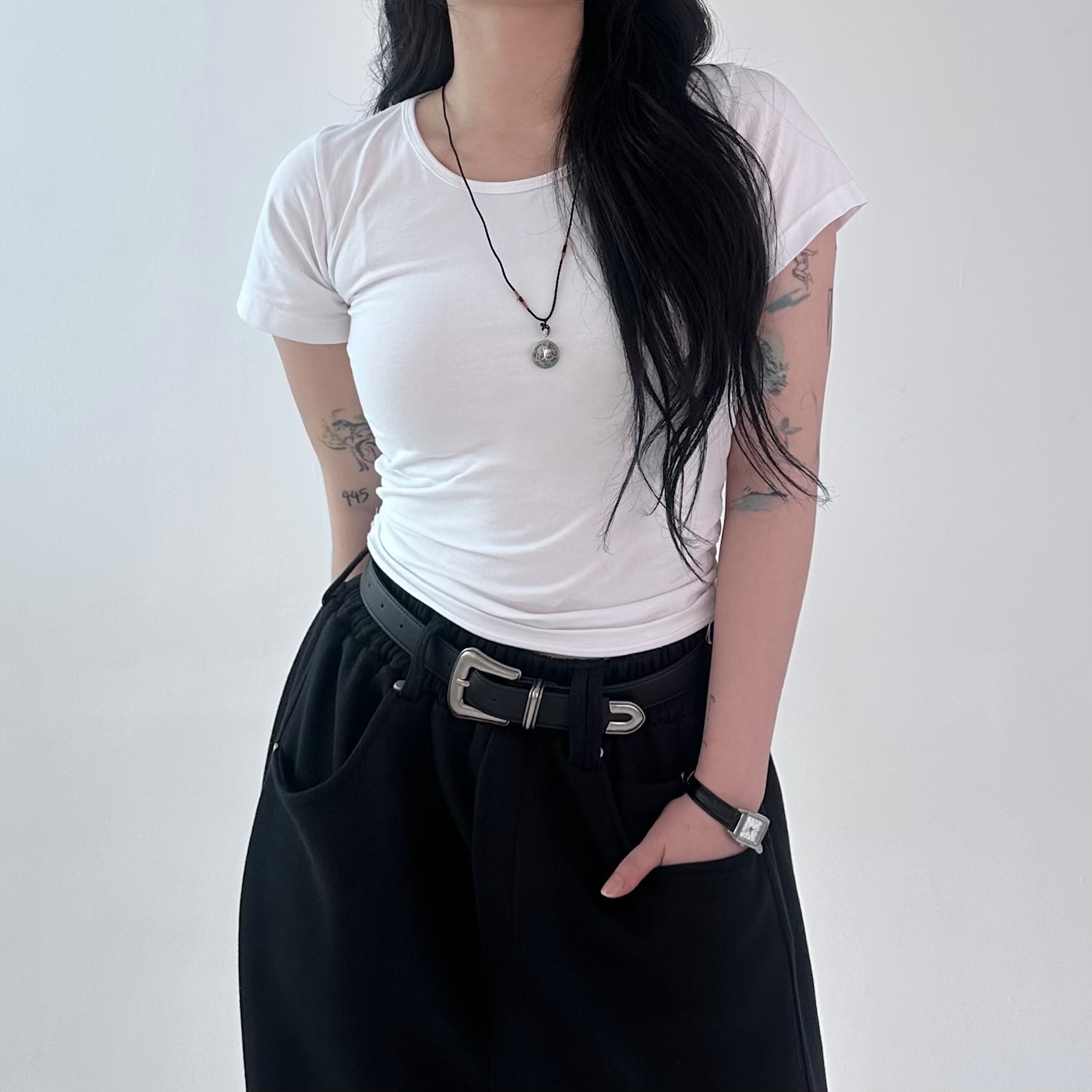 [핏보장] 팔뚝삭제 모찌 U넥 라인 슬림핏 티셔츠