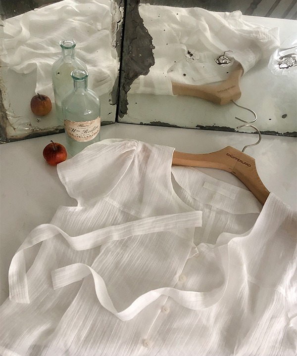 [MADE][자체제작][하객룩] 타이 튤립 퍼프 반팔 블라우스 (2color)