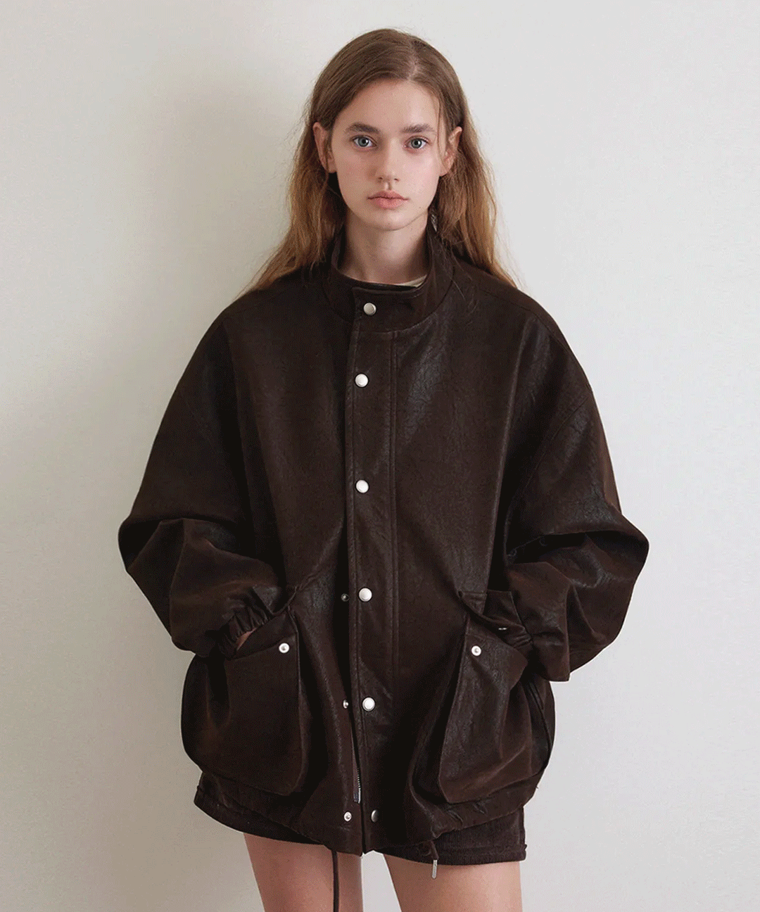 오버핏 필드 숏 레더 자켓_Subtle Brown