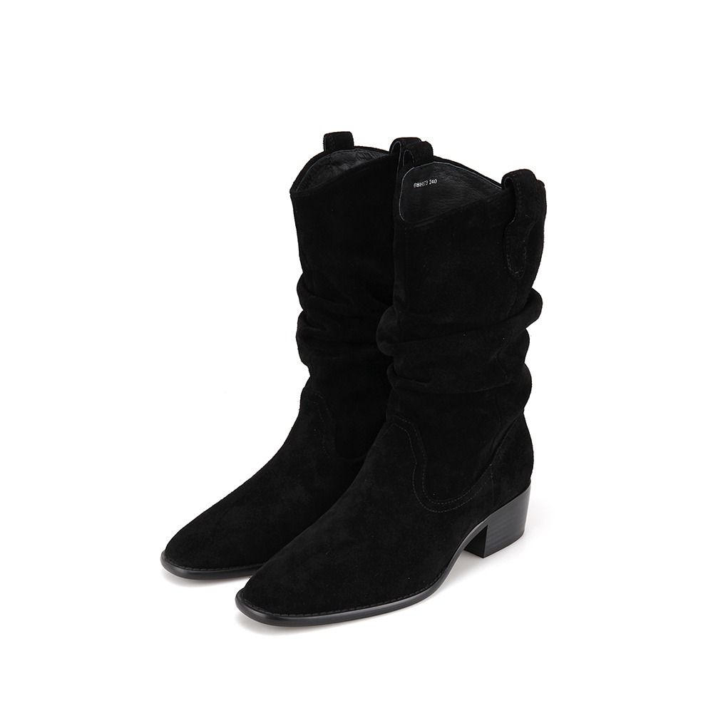 바바라 소가죽 V컷 셔링 웨스턴 여성 미들 부츠 4.5cm_BBH873