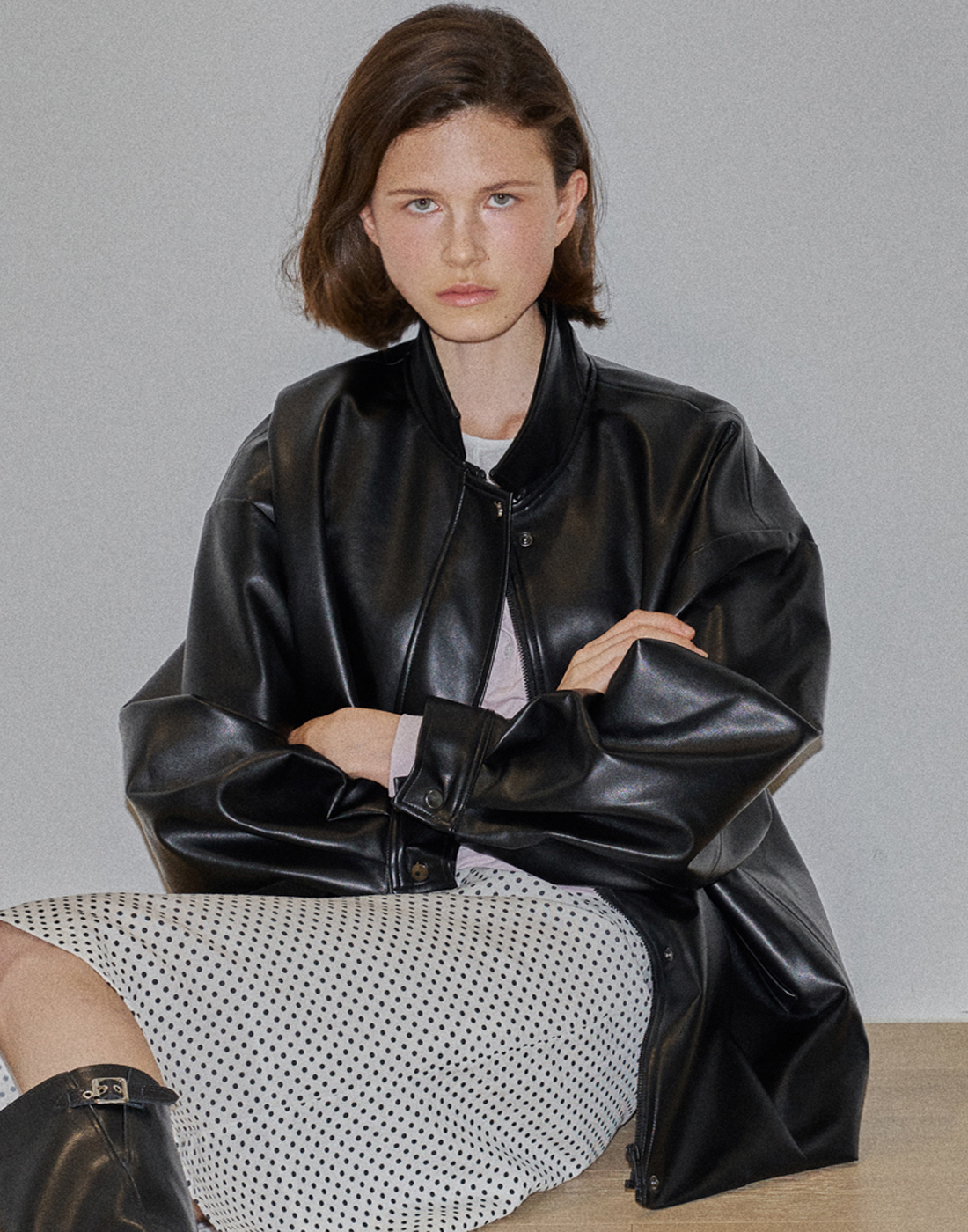 [오브유이] 빈티지 블루종 오버핏 레더자켓