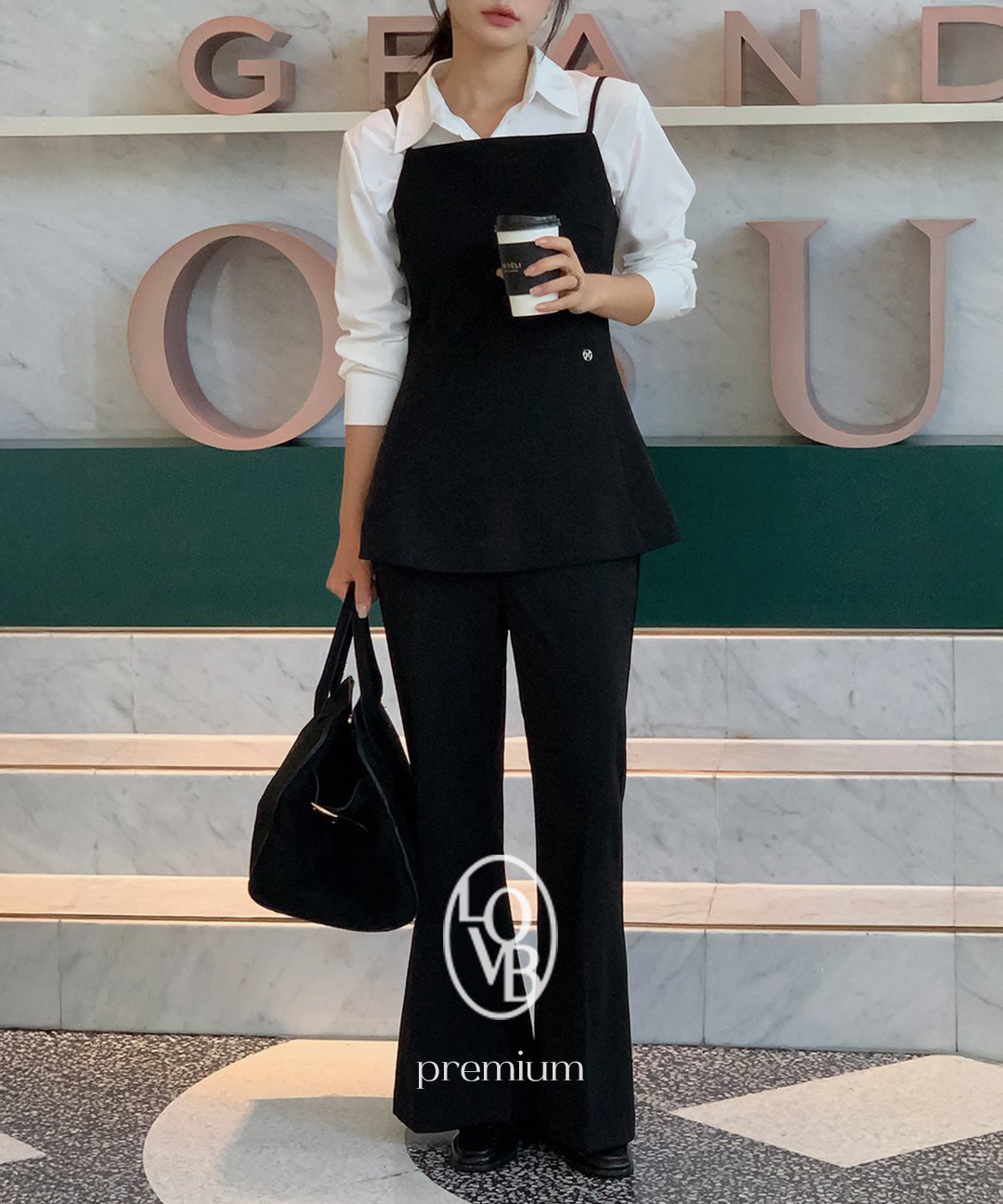 [기모버전추가🔥][구김NO/쫀쫀탱탱][활용도👍][MADE][LOVB] 콜어바웃슬림 페플럼 슬리브리스+밴딩 부츠컷 슬랙스 투피스set(44~100) (하객룩셋업-출근룩)