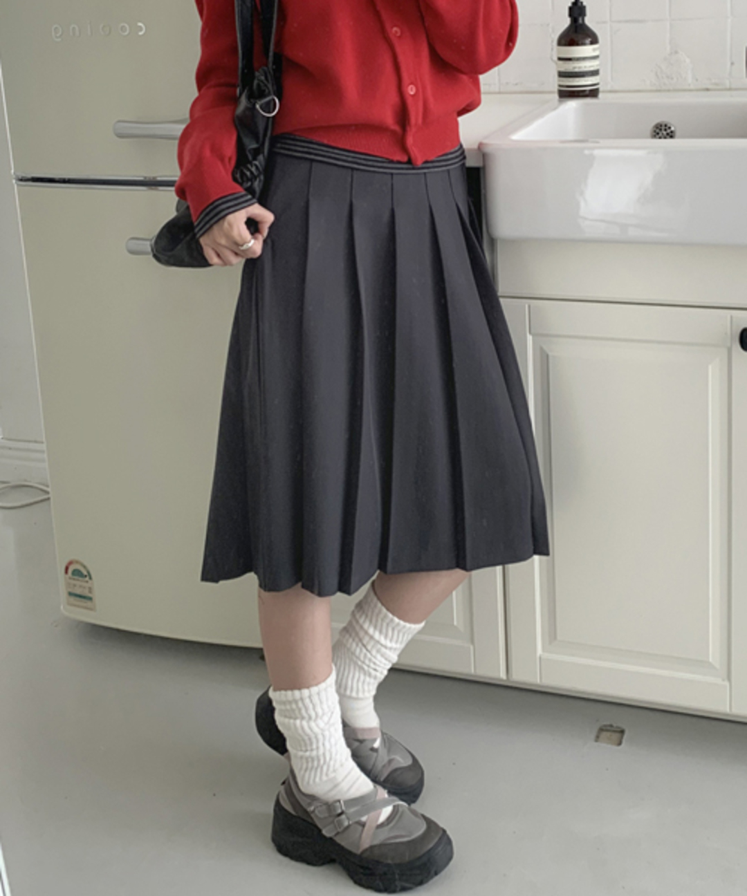 소우 미디 플리츠 스커트